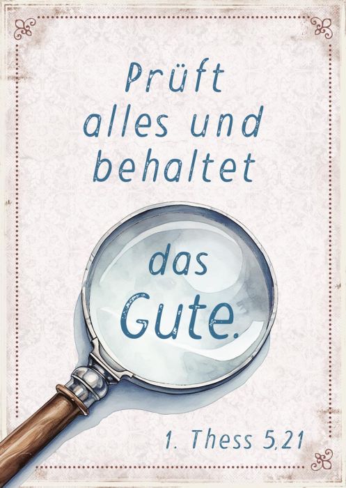 Motiv: Lupe. Jahreslosung 2025: 1. Thess. 5,21